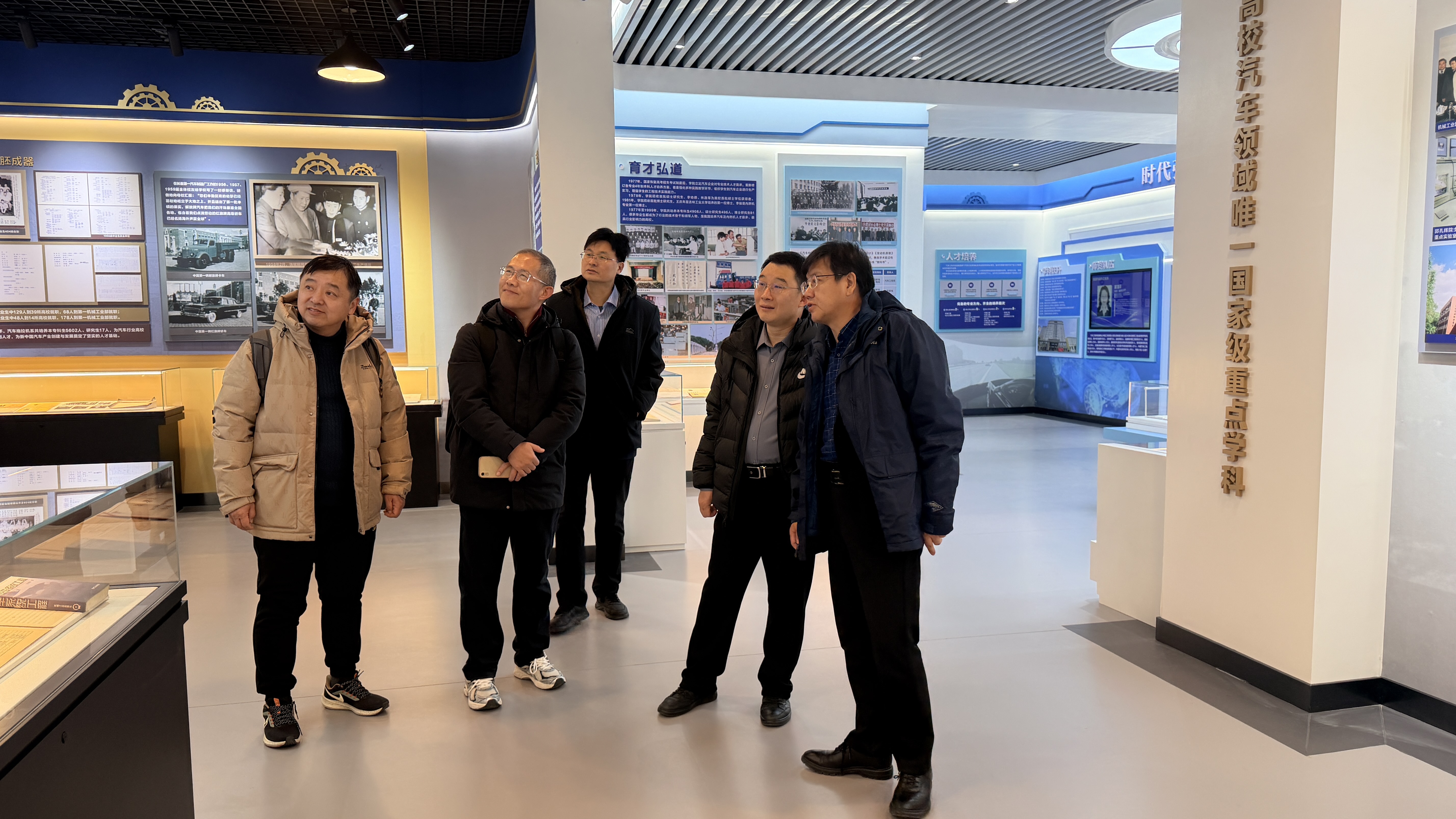 座谈开始前,黄忠华书记亲自带领调研团队参观海角社区 展馆,结合馆内珍贵历史资料、核心科研成果及实践教学实物,系统回顾了学院伴随中国汽车工业从无到有、由弱变强的奋斗征程,直观展现了学院在人才培养、科研攻关等方面的标志性成果,让调研团队对学院学科建设理念与发展路径有了更深刻的认知。