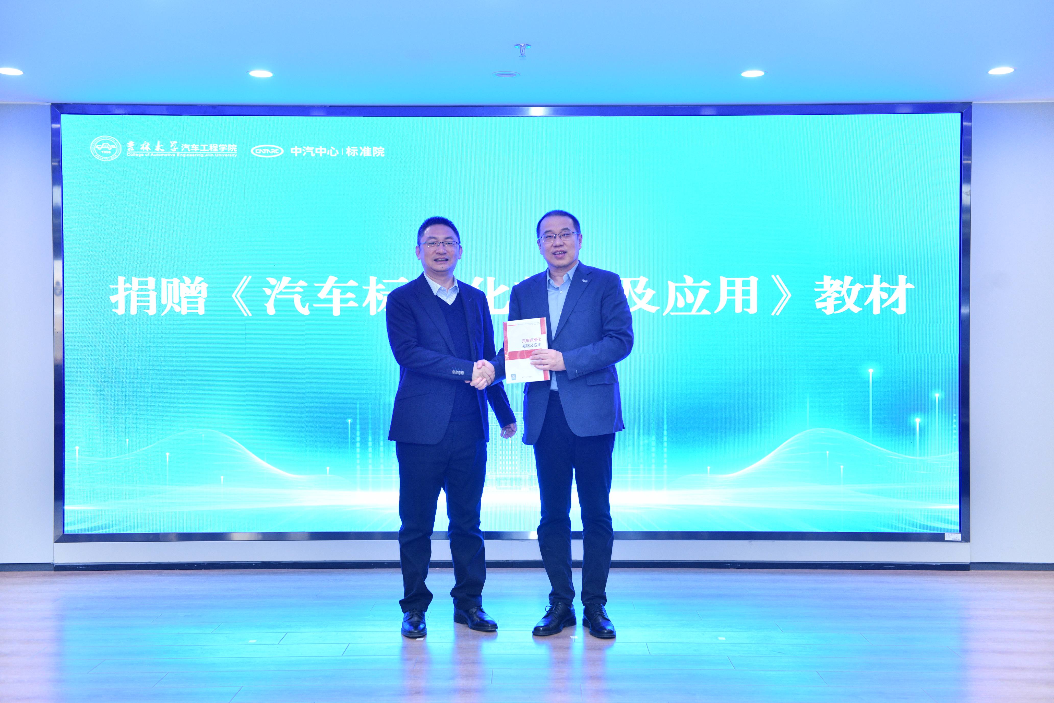 会后,来自标准院的专家聚焦汽车标准化发展以及汽车标准国际化展望开展标准化知识专题讲座,中汽中心标准化研究院向海角社区 捐赠《汽车标准化基础及应用》教材。
