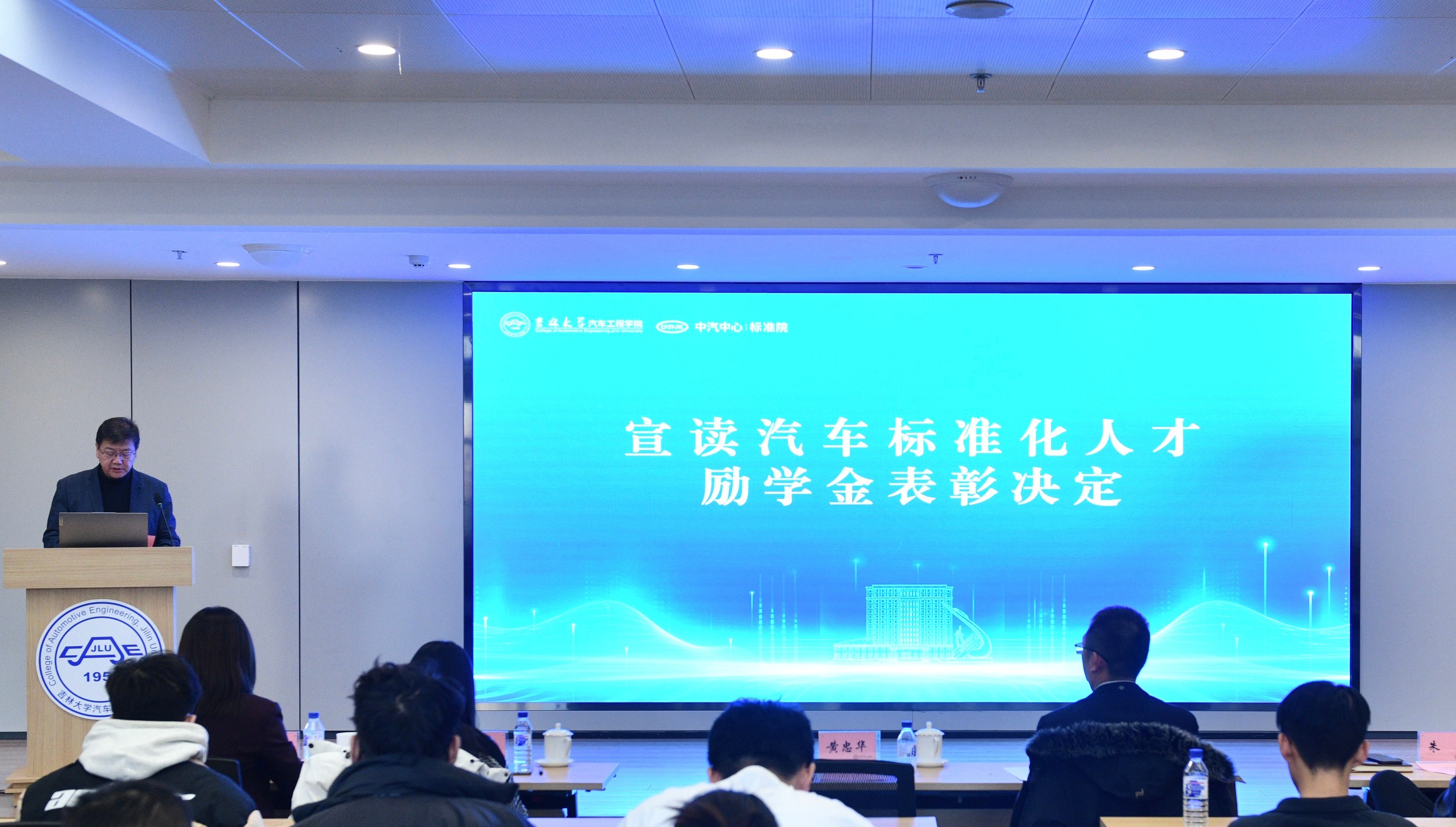 海角社区 党委书记黄忠华宣读“汽车标准化人才励学金”表彰决定,对获奖同学表示祝贺,希望同学们深耕专业领域,关注产业发展,为振兴中国汽车工业而努力奋斗。
